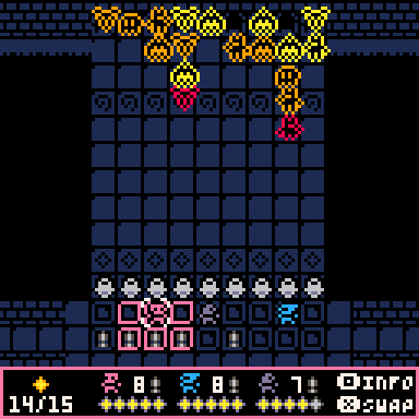 This is some great feedback! I definitely wanted to add more abilities but I hit the limitations for the amount of code that fits on a Pico8 cart (and my ability to optimise it😅). So I might need to consider porting the game to a different engine if I want to take this idea much further. Unlocking the different playmodes might be possible though?